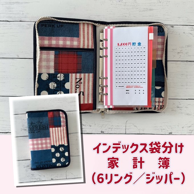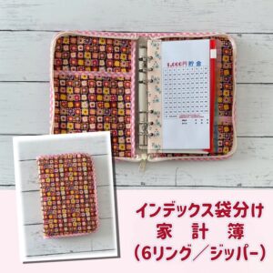 インデックス袋分け家計簿(6リング/ジッパー)パッチワーク柄