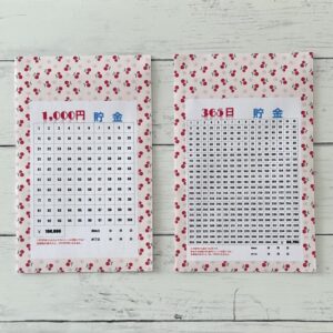 1000円を封筒に入れるたびにマスにシールを貼ります。
