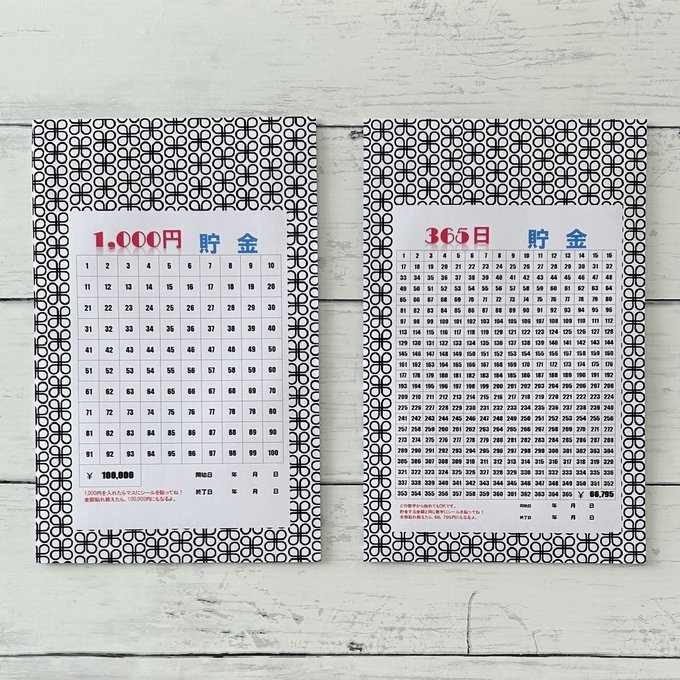 マスが100までシールを貼り終える事ができると100,000円貯まります。