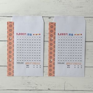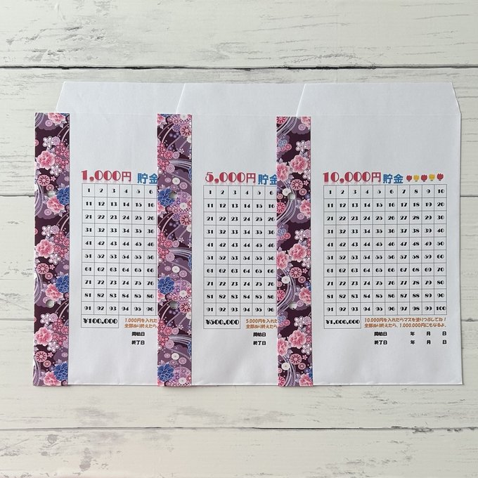 1,000、5,000円、10,000円を各封筒に入れるたびにマスを塗りつぶしてください。