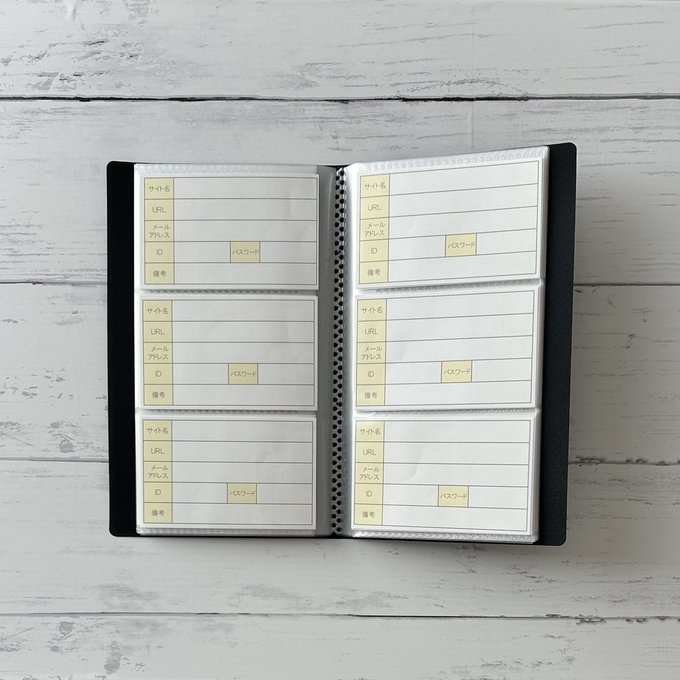 また、このパスワードファイルは枚数も沢山ありますので、インデックスなどを貼って