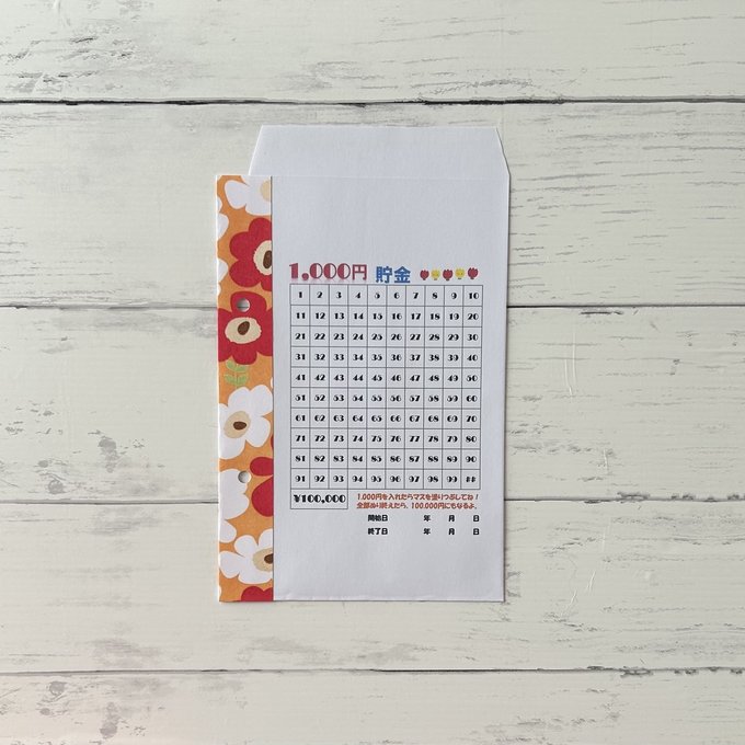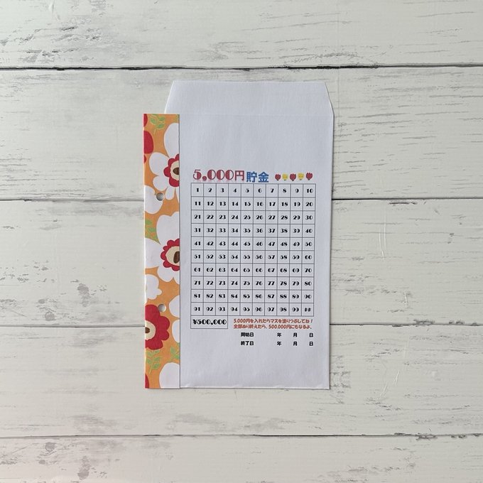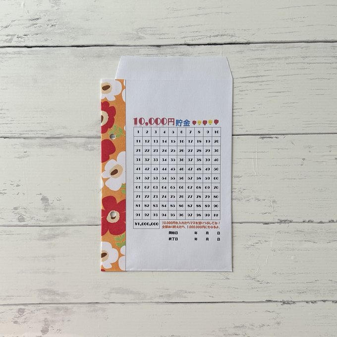 1,000、5,000円、10,000円を各封筒に入れるたびにマスを塗りつぶしてください。