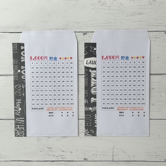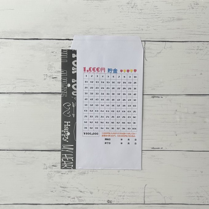 1000円を封筒に入れるたびにマスを塗りつぶしてください。