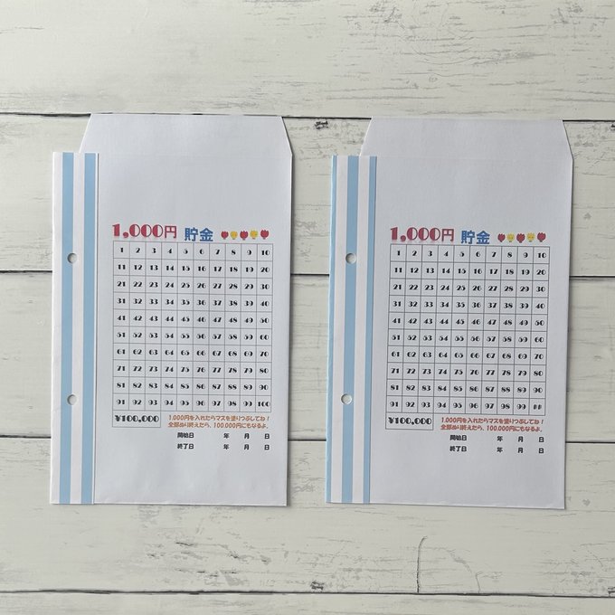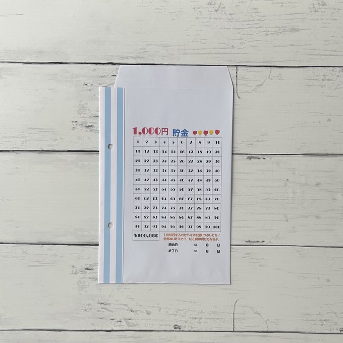 1000円を封筒に入れるたびにマスを塗りつぶしてください。