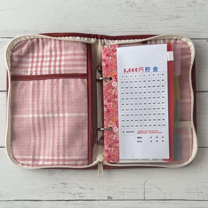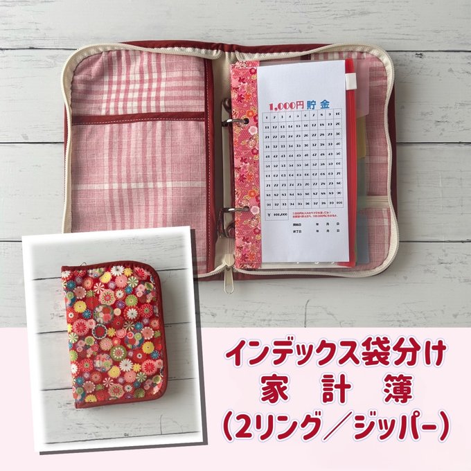 インデックス袋分け家計簿(2リング/ジッパー)和柄-赤