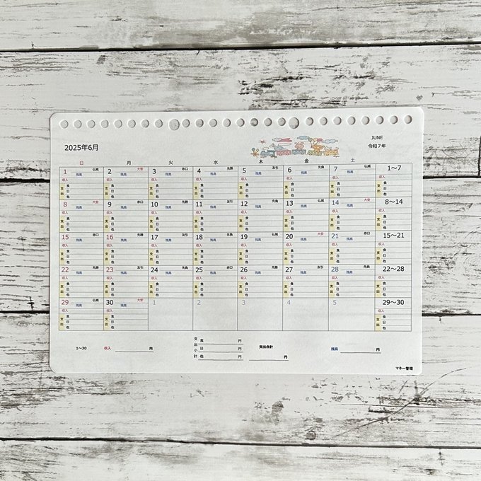 カレンダー形式の家計簿をつくりました。