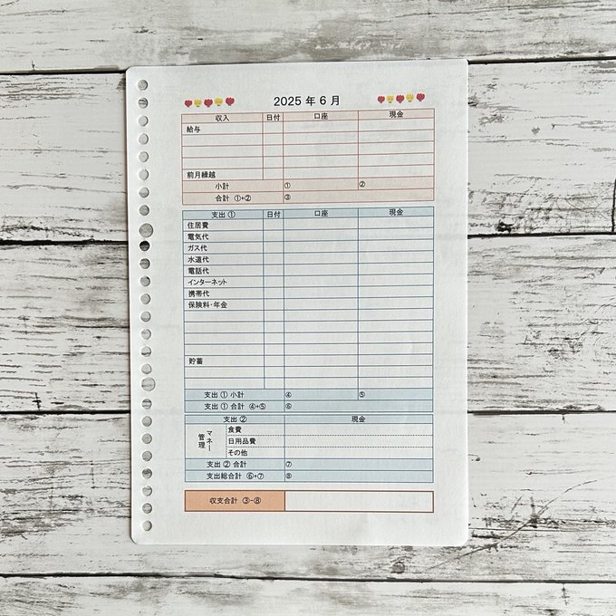 カレンダー式かんたん家計簿 B5 / ハート④
