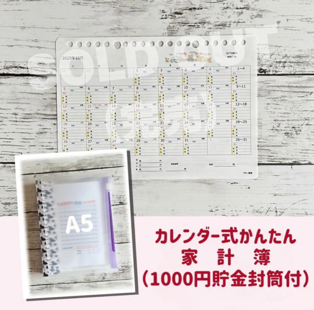 【SOLD OUT】カレンダー式かんたん家計簿(1000円貯金封筒付)ちょうちょ