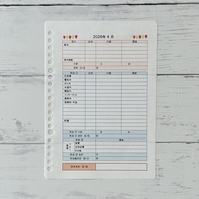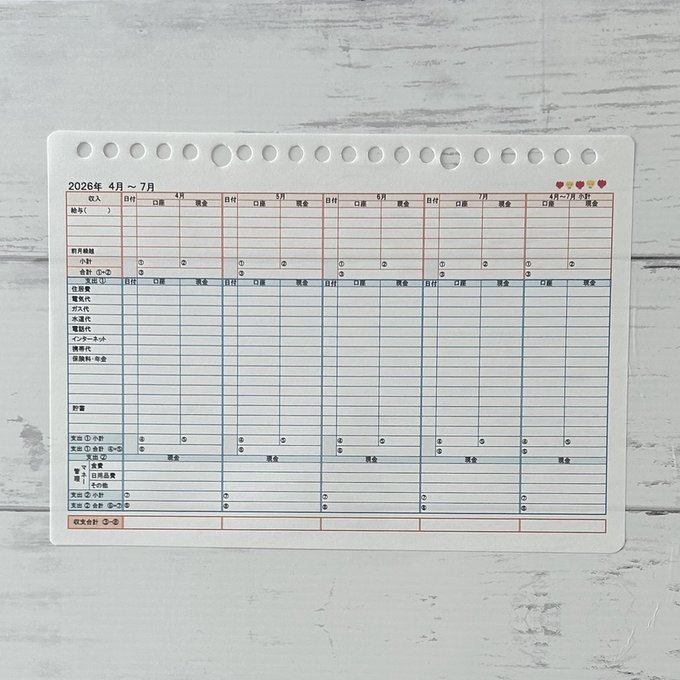お金の動きがわかりやすくする為に、口座欄と現金欄を作りました。