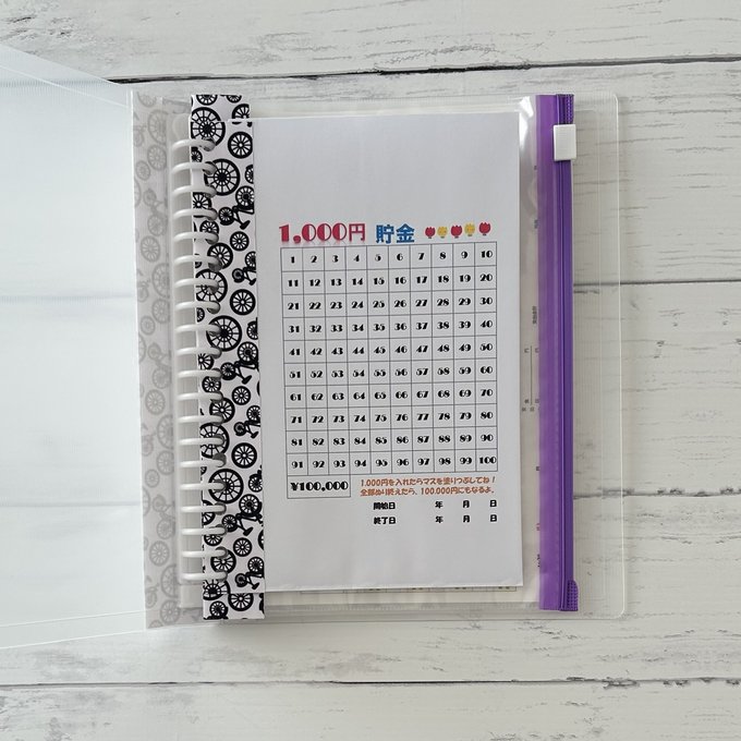 ファイルを開くと、お金の管理袋とファイルが1体になった袋分けをお付けしていますので、