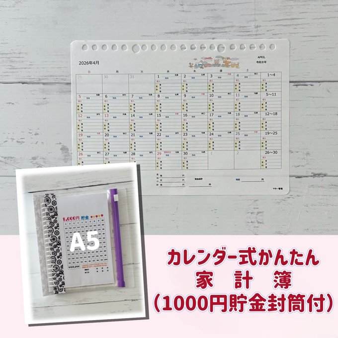 カレンダー式かんたん家計簿(1000円貯金封筒付)自転車柄