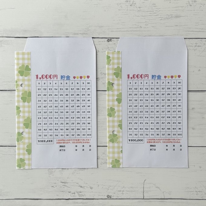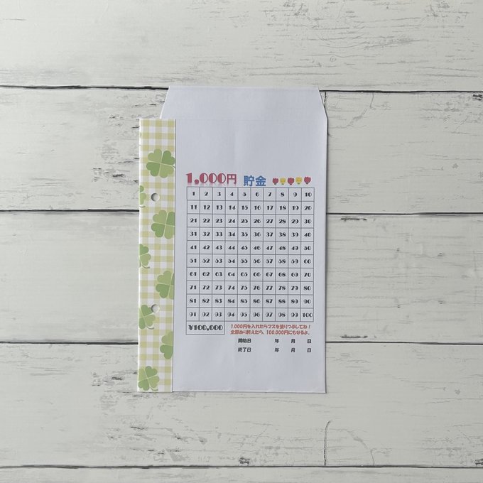 1000円を封筒に入れるたびにマスを塗りつぶしてください。